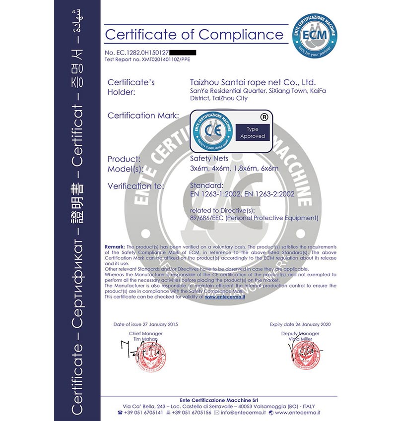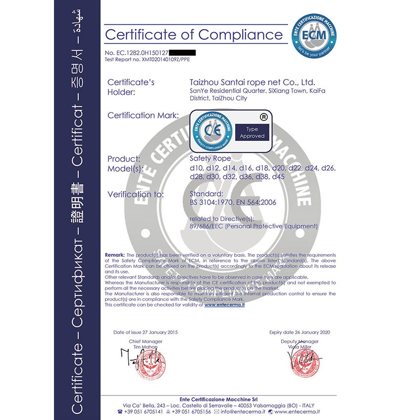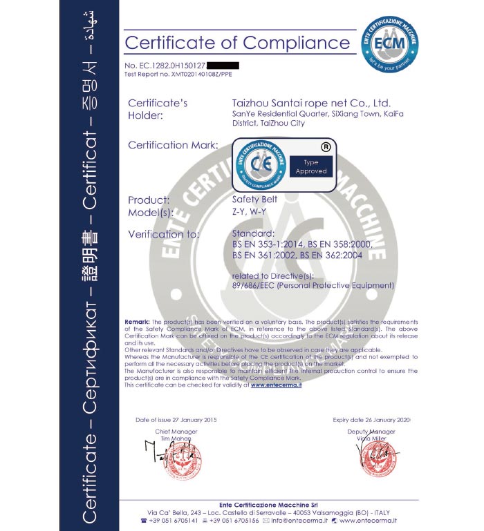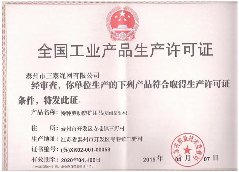 泰州市三泰健康科技有限公司(原 泰州市三泰繩網(wǎng)有限公司),本公司成立于1988年12月22日,至今近30年的生產(chǎn)歷程。多年來(lái)的生產(chǎn)經(jīng)驗(yàn),加之我們不斷的創(chuàng)新,已經(jīng)建設(shè)成為集研制、開(kāi)發(fā)、生產(chǎn)、銷(xiāo)售為一體的龍頭企業(yè)。公司生產(chǎn)線由捻線車(chē)間、制繩車(chē)間、織網(wǎng)車(chē)間、織帶車(chē)間、織(絞)繩車(chē)間、安全網(wǎng)組裝車(chē)間、安全帶組裝車(chē)間、檢驗(yàn)室等組成。企業(yè)現(xiàn)有職工155人,企業(yè)管理人員6名,市場(chǎng)研發(fā)人員8名,專業(yè)質(zhì)檢人員2名,......